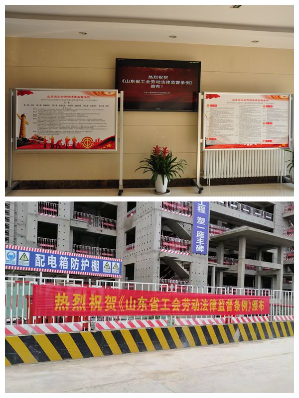結(jié)合工作實(shí)際,多形式、多渠道加強(qiáng)宣傳。各分會(huì)小組在工地現(xiàn)場(chǎng)、沿街、宣傳欄、戶(hù)外電子屏、門(mén)廳電子屏設(shè)置宣傳標(biāo)語(yǔ)、懸掛橫幅,提高《條例》的知曉率。通過(guò)宣傳,引導(dǎo)廣大職工尊法、學(xué)法、守法、用法。